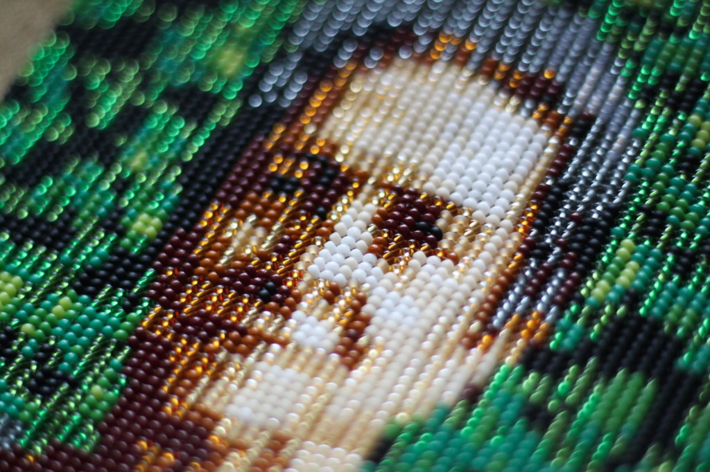 Elma, 2023. Seed beads, nylon thread, wire guardians. 10.5 x 5 inches.