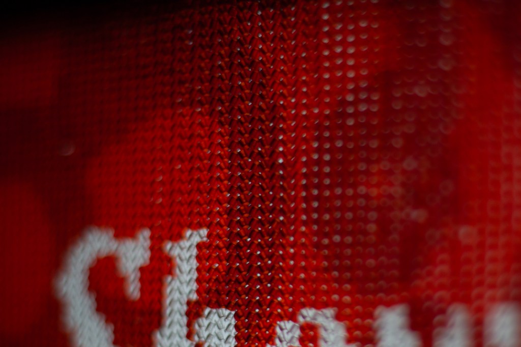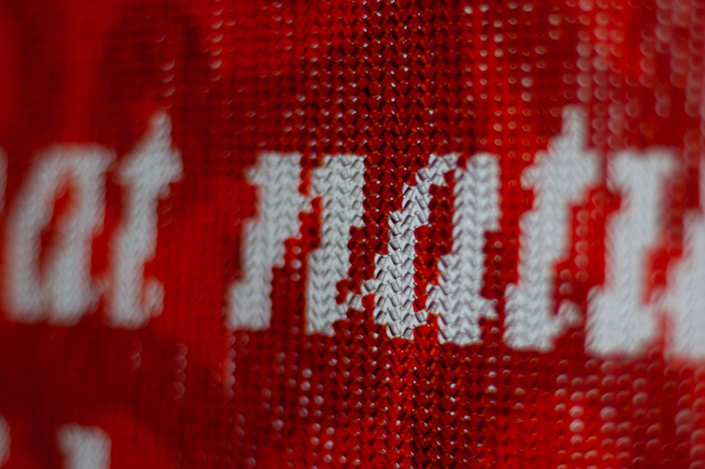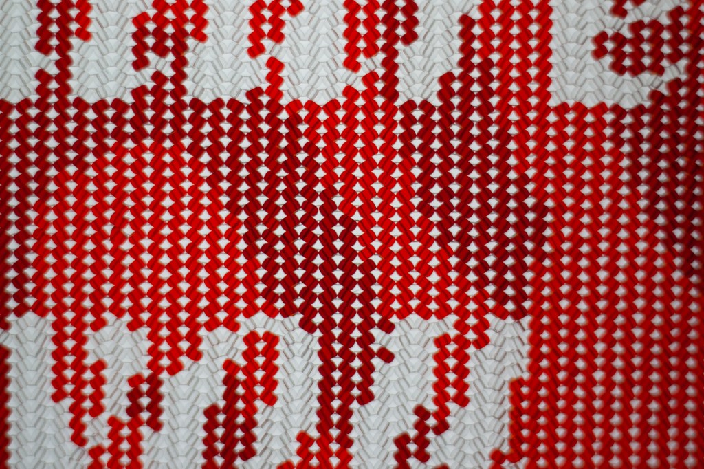Beacon, 2024. Transparent seed beads (size 11), nylon thread, lightbox. 8 x 10 inches.