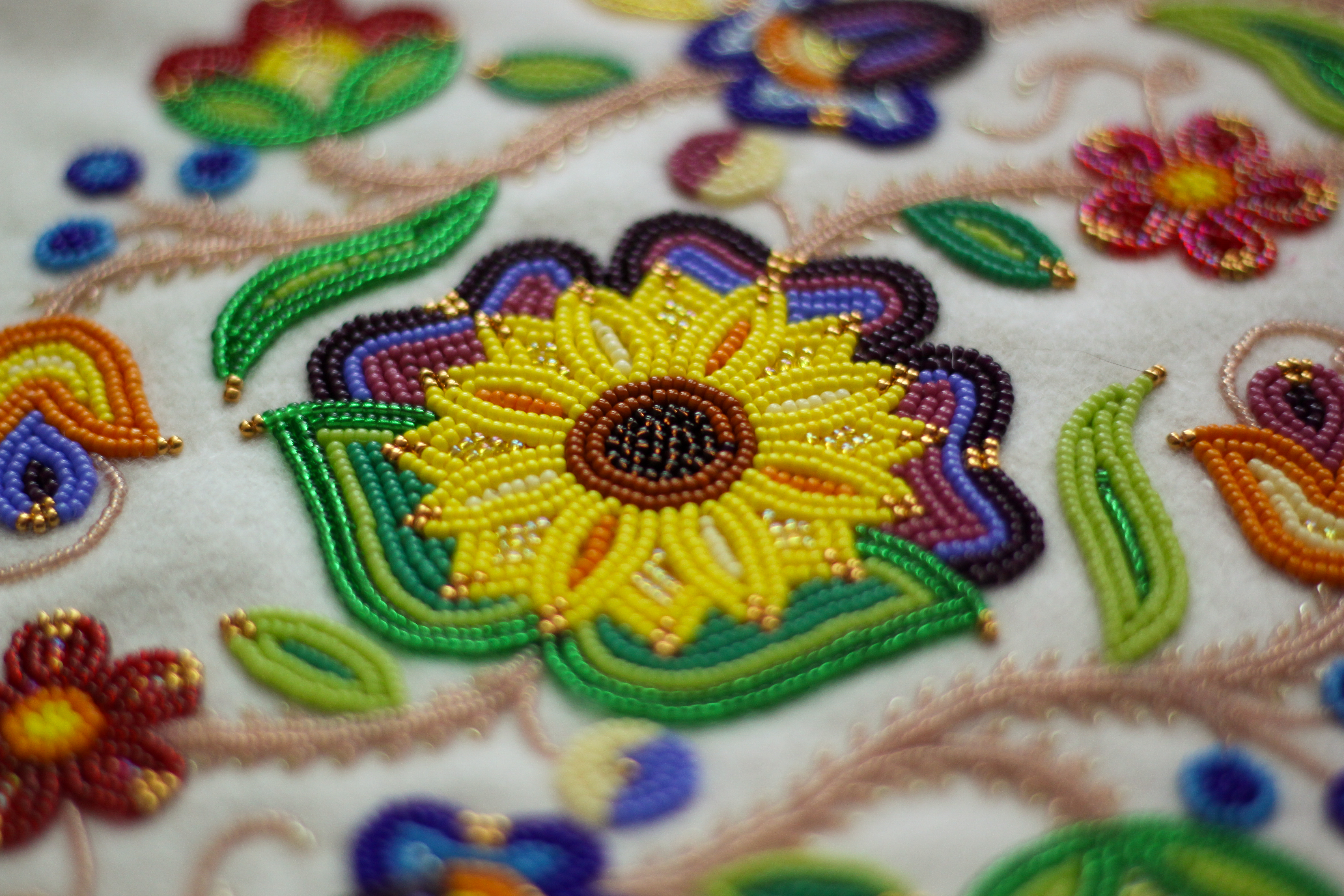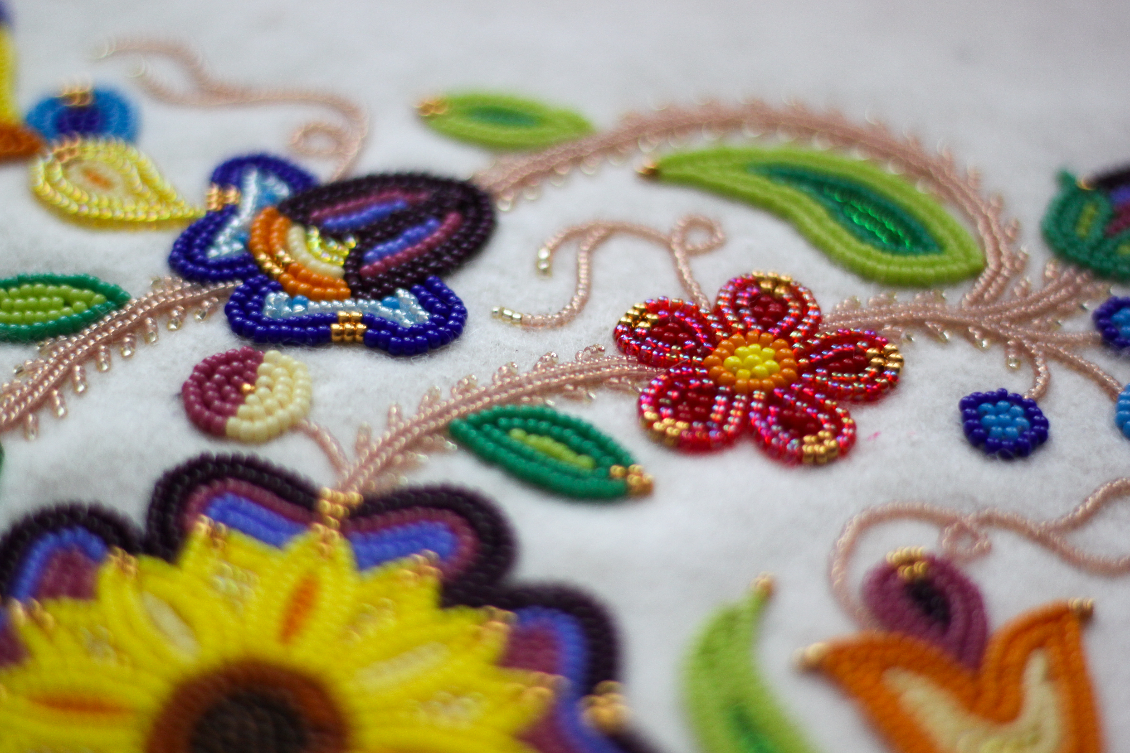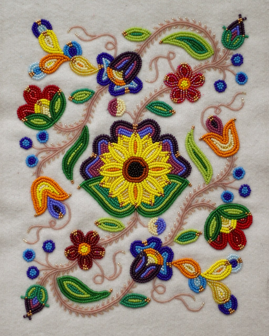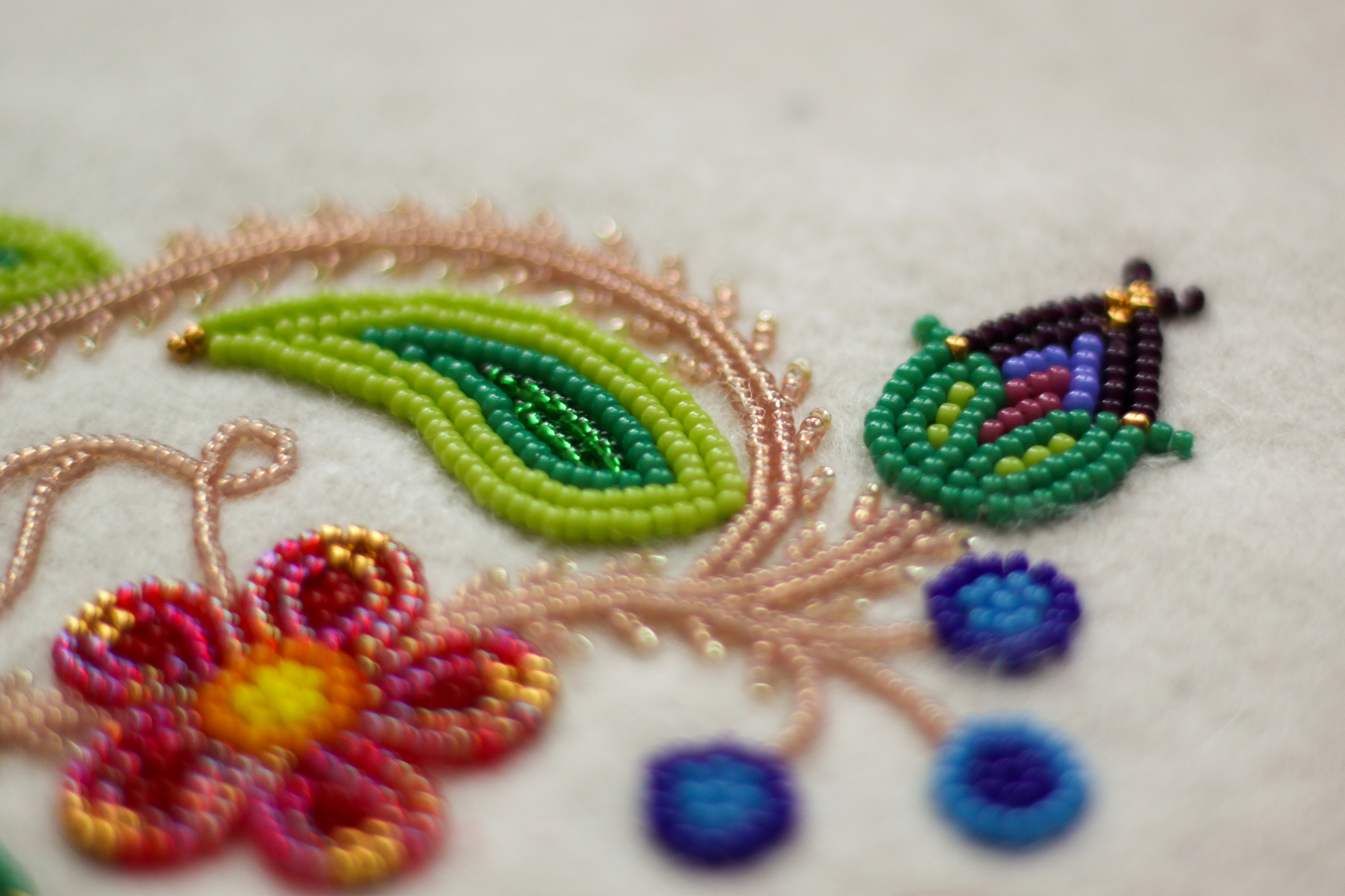 Spencer’s Gift, 2025. Size 11 & 15 glass seed beads, nylon thread on melton wool. 8 x 10 inches.